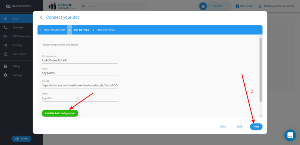 🔗 Conectar el número de teléfono a su bot AudioCodes