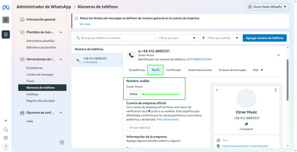 Este nombre es el que verán tus clientes cuando te contacten, por lo que es vital mantenerlo actualizado y profesional.