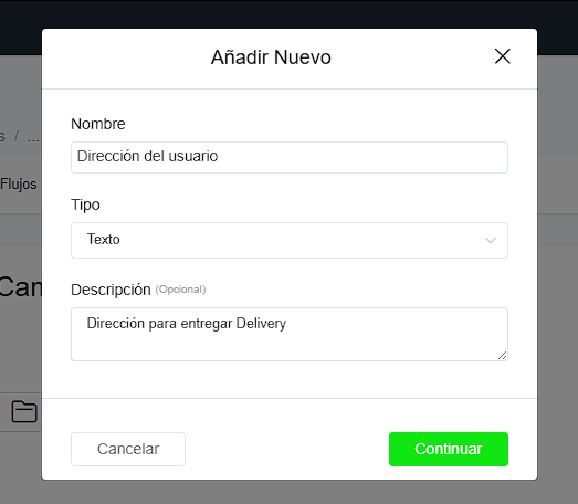 - O crear un nuevo campo personalizado directamente desde el flujo
