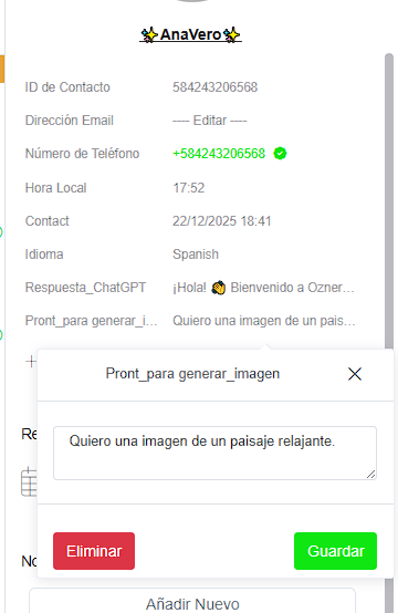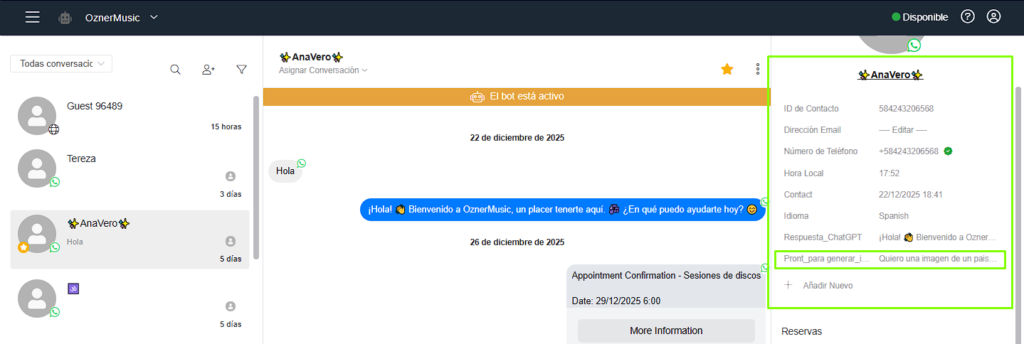 como correo electrónico, número de teléfono, preferencias, respuestas y cualquier otro dato necesario según el flujo de tu bot.