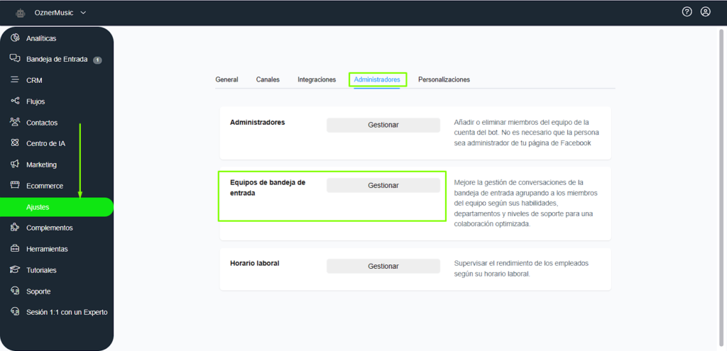 Esta función te permite asignar conversaciones específicas a un administrador o a un equipo de la bandeja de entrada, facilitando la organización y mejorando la atención al cliente.
