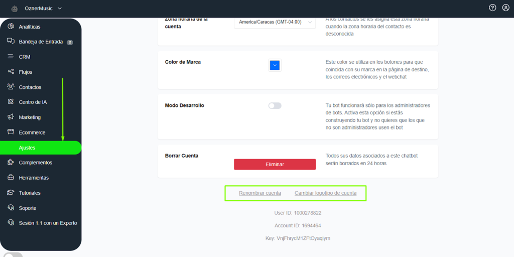 Para modificar el nombre de la cuenta o la imagen de perfil, solo debes seguir esta ruta dentro de tu panel de Whapify: