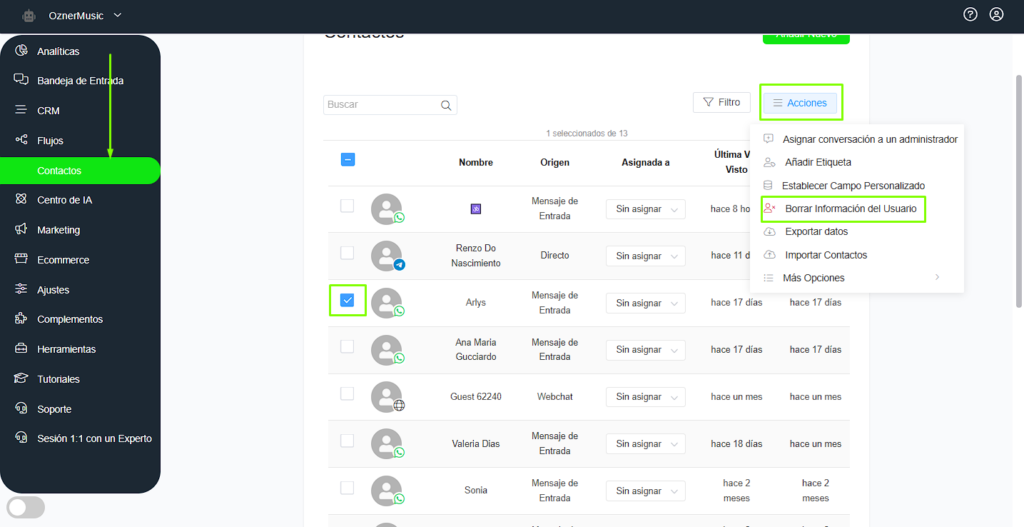 👥 Eliminar un contacto o varios contactos desde la sección Contactos