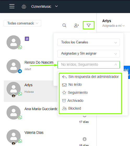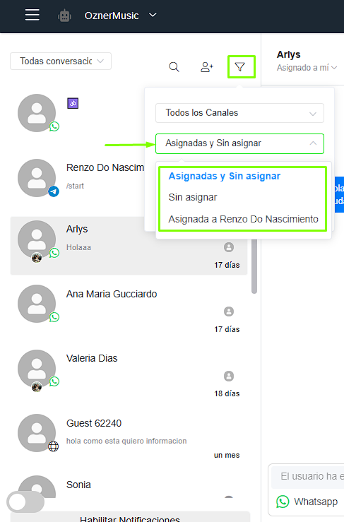 🧑‍💼 Filtrar conversaciones asignadas / no asignadas