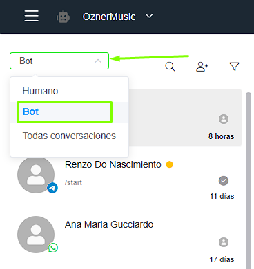 Se mostrarán únicamente las conversaciones manejadas automáticamente por el bot.
