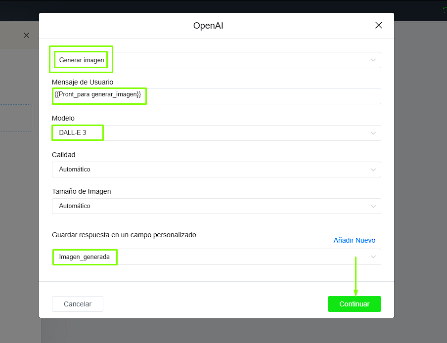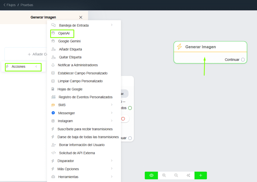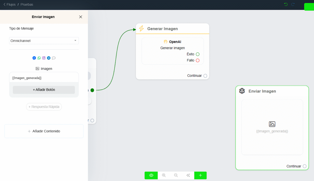 Una vez conectada, podrás usar la acción “Generar imagen” en tus flujos.