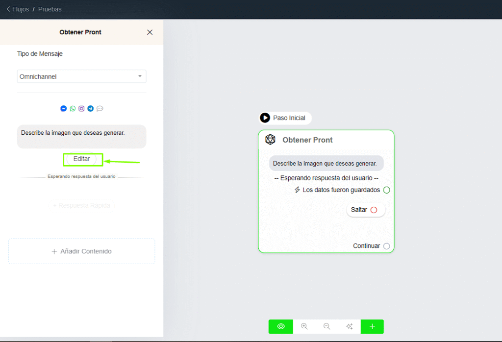 5️⃣ En el campo Mensaje, ingresa el texto que el usuario proporcionó (la descripción de la imagen).