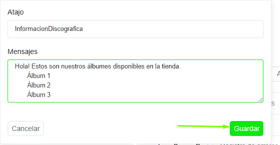 Para crear una nueva respuesta guardada, sigue estos pasos: