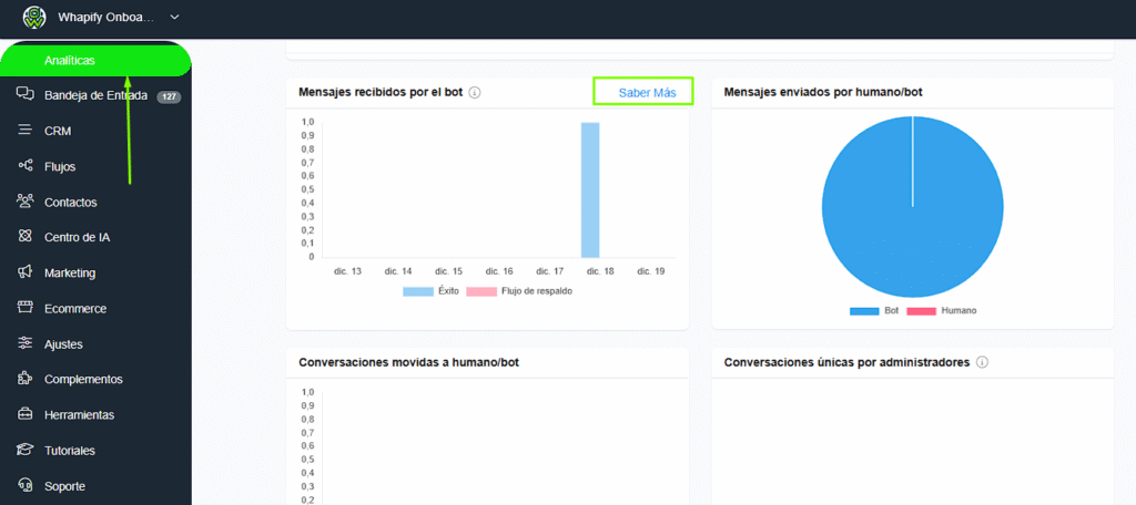 Gracias a este panel puedes identificar mensajes sin respuesta, mejorar el entrenamiento de la IA y ofrecer una atención cada vez más precisa y efectiva 🚀