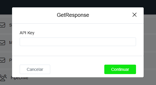- Paso 3: Busca la integración de GetResponse e ingresa tu clave API para continuar.