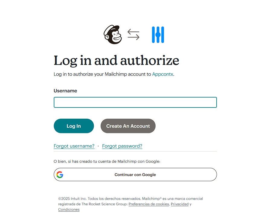 - Paso 4: Ingresa tus credenciales de MailChimp para continuar y haz clic en Iniciar sesión.