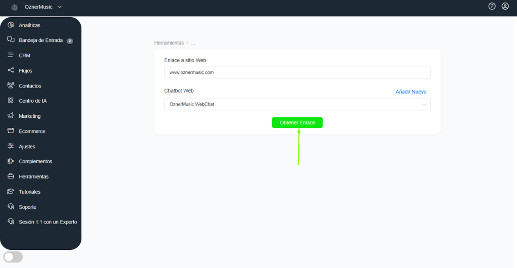 Existen escenarios donde necesitarás generar el enlace del simulador de forma manual. Por ejemplo, cuando un bot solicita la URL del sitio web del cliente y genera automáticamente el enlace para mostrar cómo funcionaría el chatbot en su página.⚙️ Opciones avanzadas