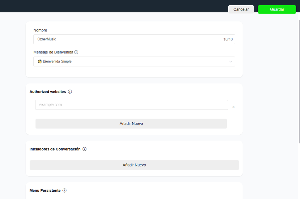 Existen escenarios donde necesitarás generar el enlace del simulador de forma manual. Por ejemplo, cuando un bot solicita la URL del sitio web del cliente y genera automáticamente el enlace para mostrar cómo funcionaría el chatbot en su página.⚙️ Opciones avanzadas