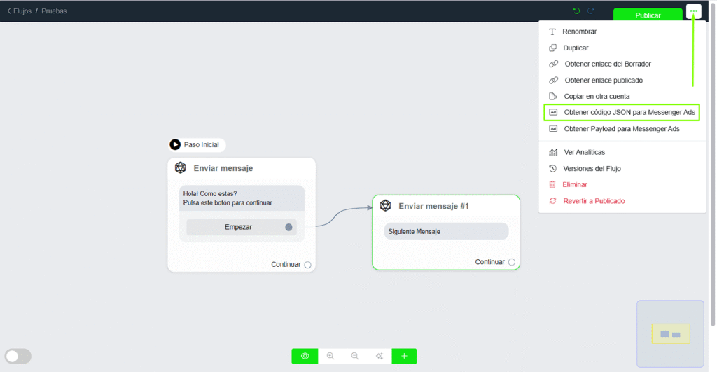 Cada flujo en Whapify tiene un código JSON único. Para obtenerlo, sigue estos pasos: