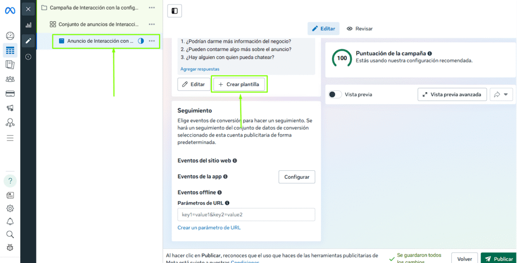 Esto hace posible que, cuando un usuario haga clic en tu anuncio, inicie automáticamente una conversación con tu bot.