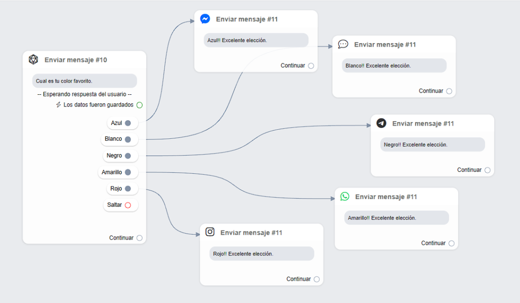 Dependiendo de qué opción seleccionó el usuario, puedes generar caminos en tus flujos.