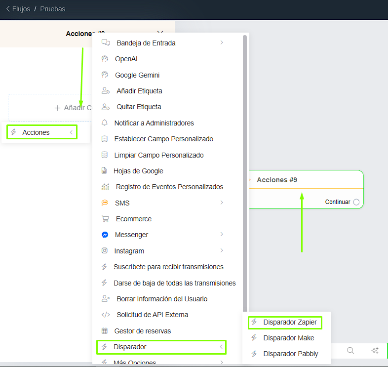 Acciones → Disparador → Disparador Zapier